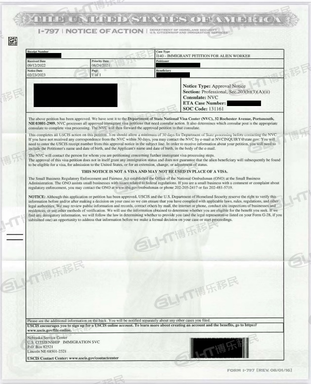新周第 一天迎来的喜报,又一位美国客户锁定绿卡身份。恭喜EB-3美国客户Y先生成功获得I-140审批通过!